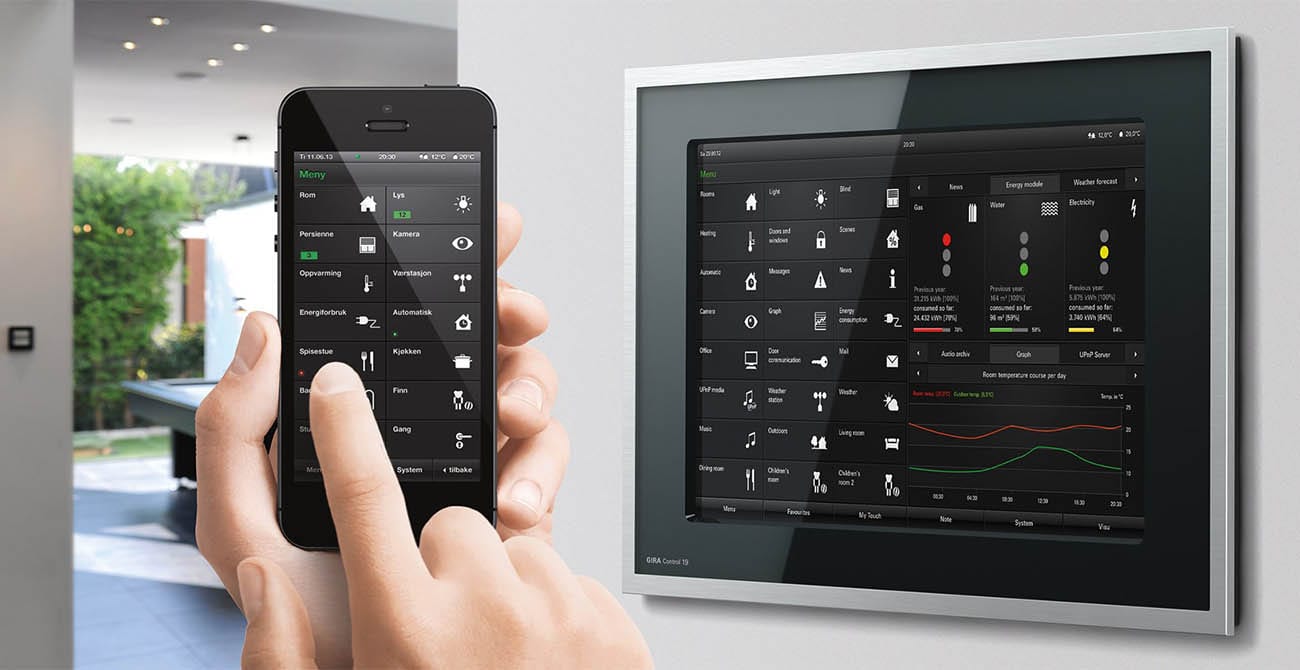 Vi installerer KNX smarthus, som er en internasjonal standard for bygningsautomasjon. Dette gir en robust og fleksibel løsning som kan bygges videre på over tid.